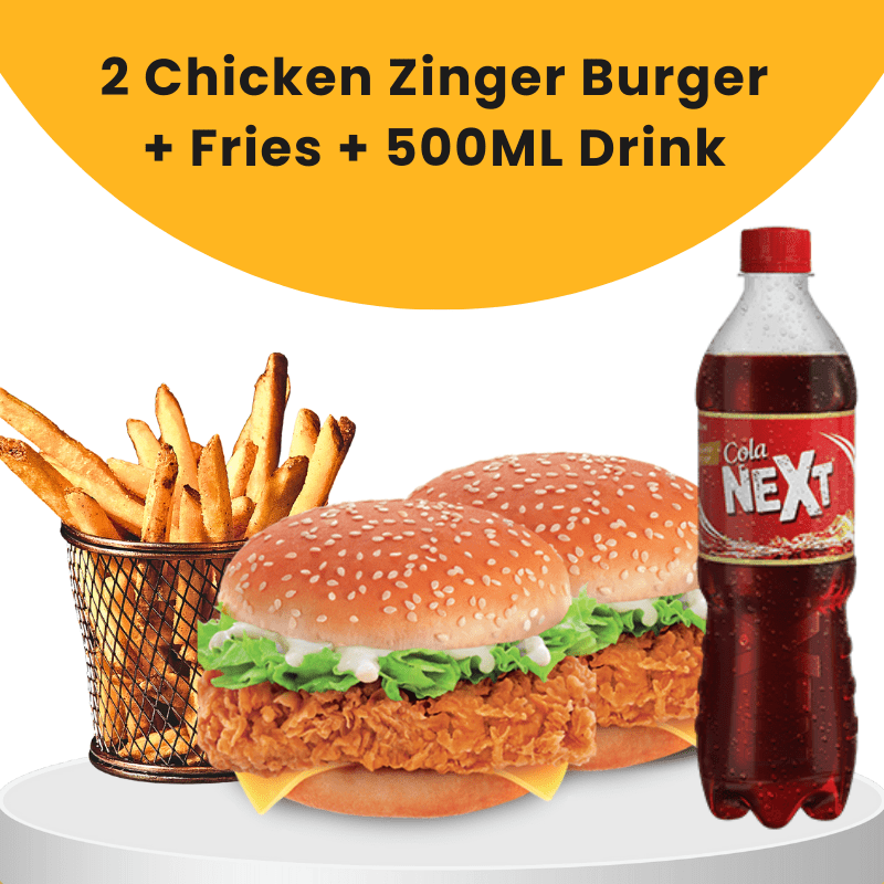 2 ZINGER BURGER + FRIES + 500ML DRINK